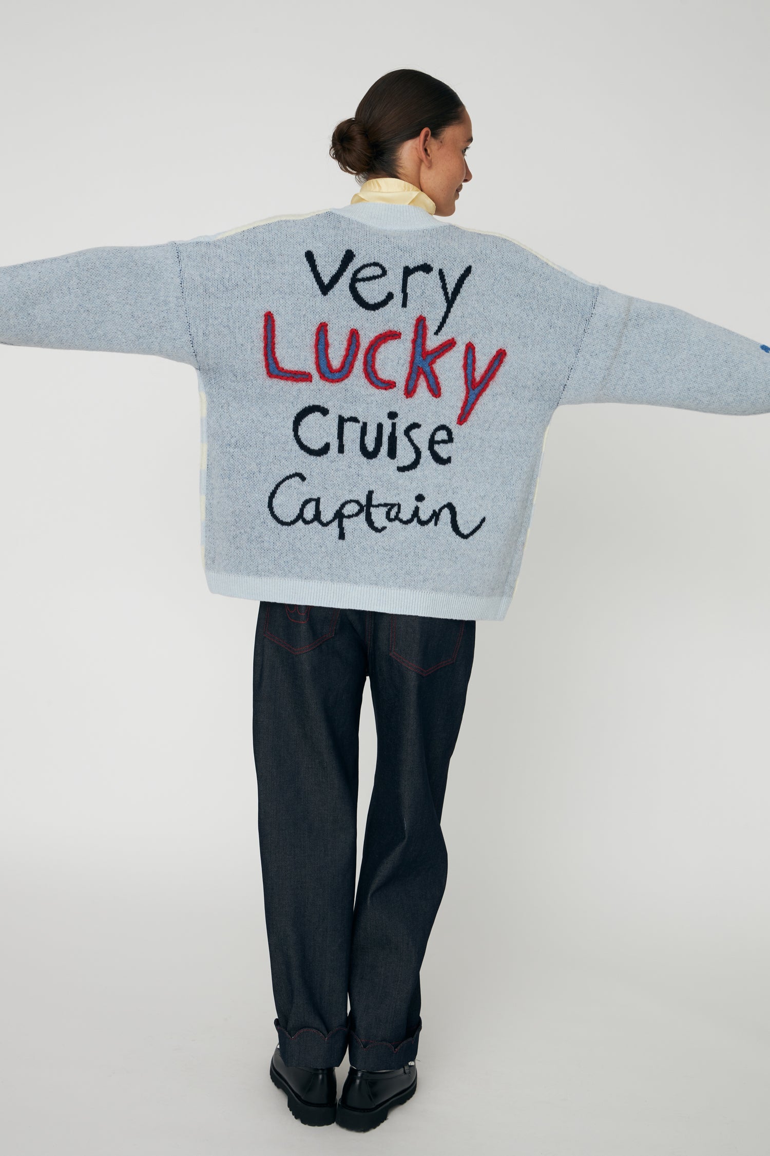 Uld Cardigan med Broderi - Blue Sea
