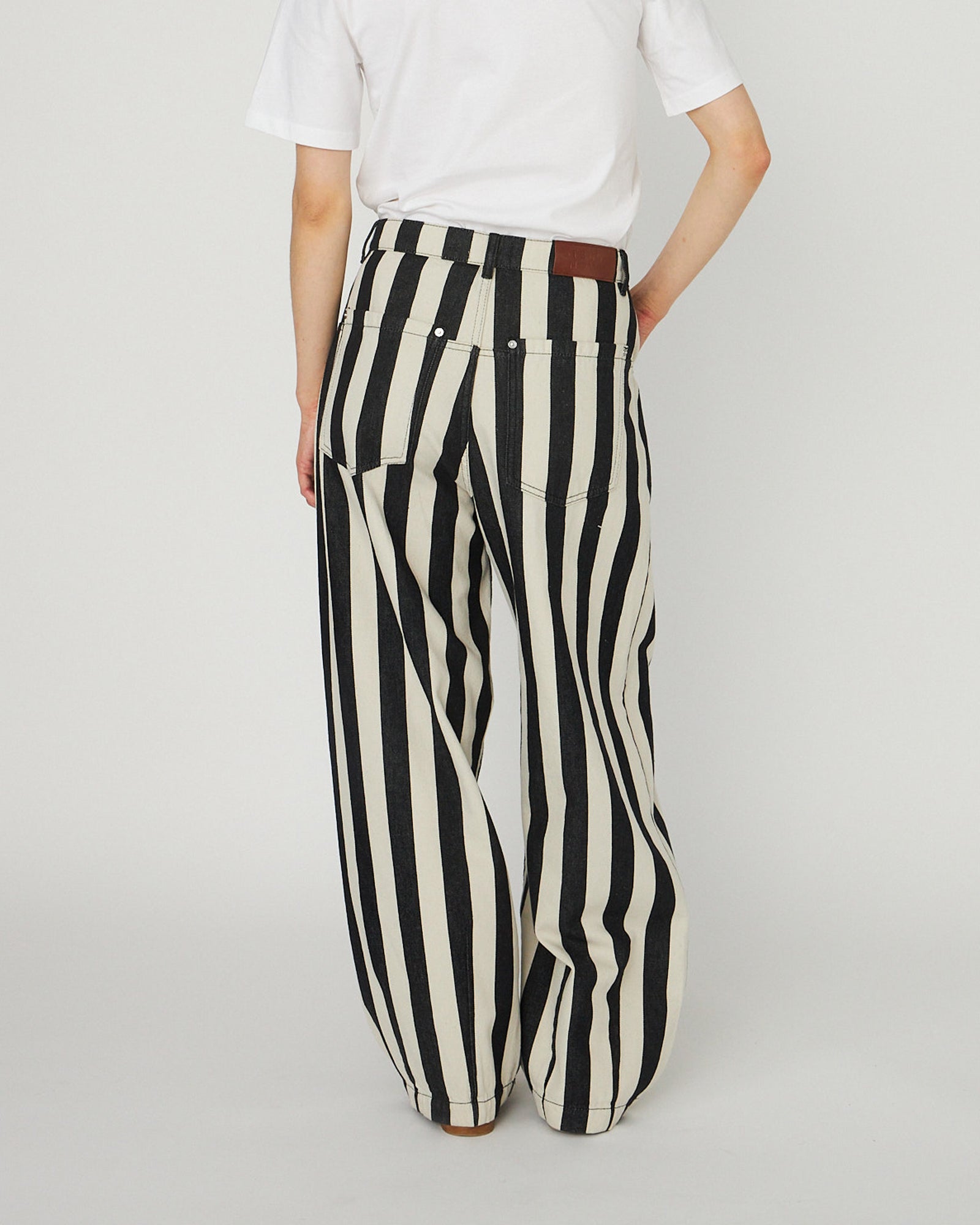 Striped Silk Mid-Waist Pants - Creme Blue Stripes