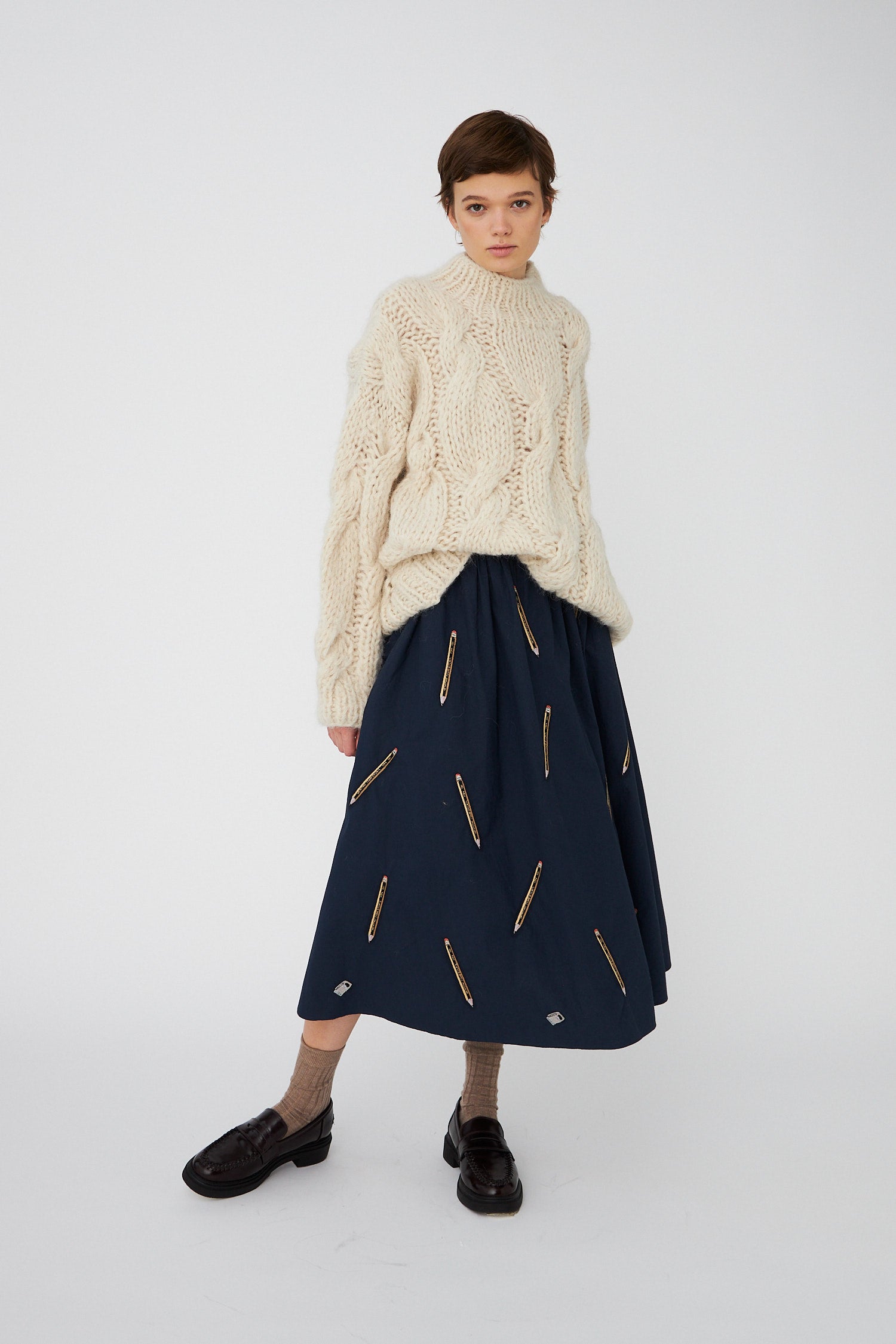 Cable Knit with bobbles - Light Grey Mélange