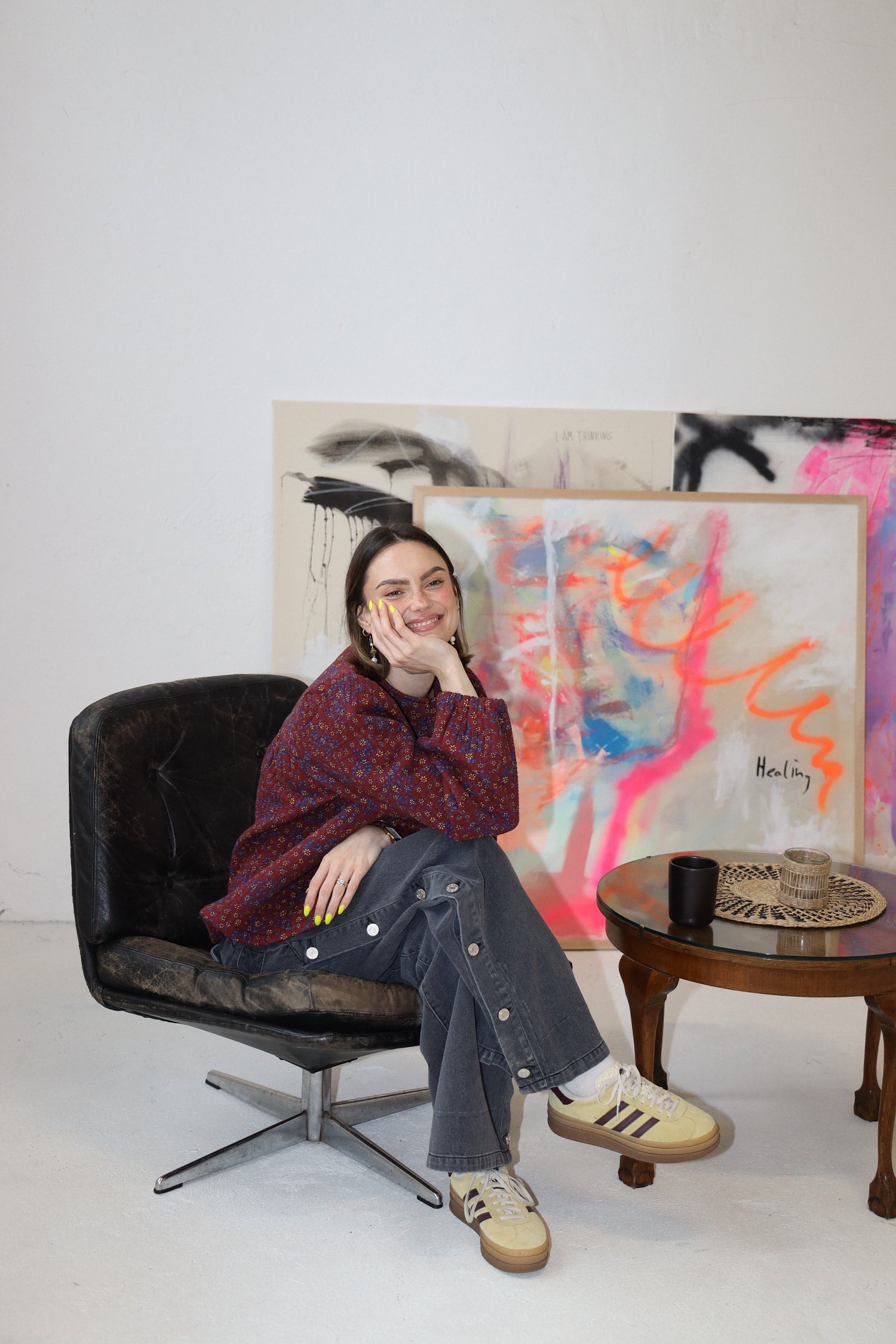 Vivian : Beaucoup de choses. Les couleurs, mes pensées, ou parfois des citations. Ma plus grande motivation, c'est d'avoir l'esprit tranquille quand je peins. Je suis quelqu'un qui réfléchit beaucoup et qui est toujours dans sa tête, donc la peinture est une thérapie pour moi.